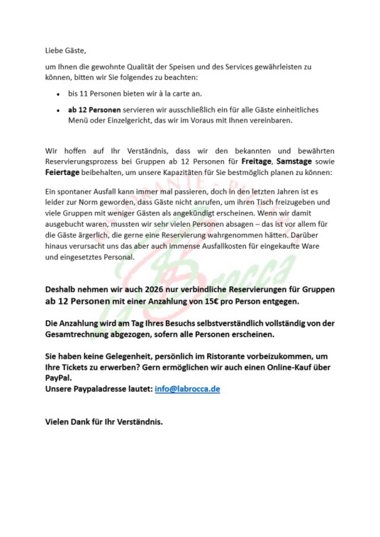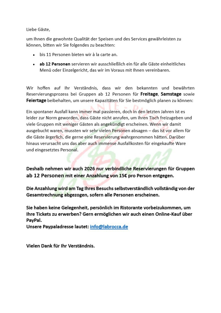 Bitte geben Sie immer Name, Datum, Personenzahl , Ihre Mailadresse und Ihre Telefonnummer an.